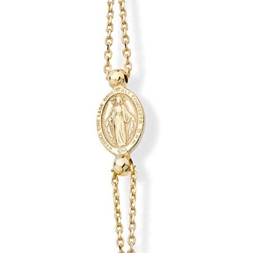 - STYLISH AND INSPIRATIONAL - Show your spiritual side with this dainty 18k gold over 925 sterling silver cultured freshwater pearl rosary bracelet featuring a classic Miraculous Medal of the Virgin Mary and a sideways polished cross. Wear it as a timeless symbol of your faith or as a cool fashion statement. Looks just as beautiful with a casual outfit or a dressy attire. Comfortable and chic for everyday wear. Adjustable in length for a perfect fit. Wear alone or layered with other chains.