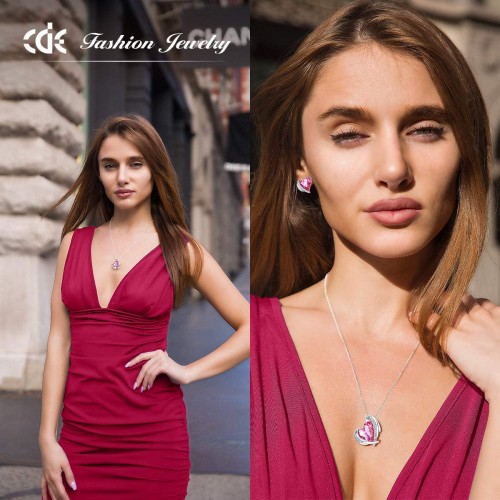 CDE Love Heart Necklaces and Earrings Jewelry Set for Women White Gold Plated/Rose Gold Tone Crystals Birthstone Gifts for Party/Anniversary Day/Birthday