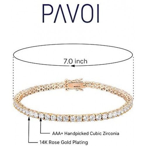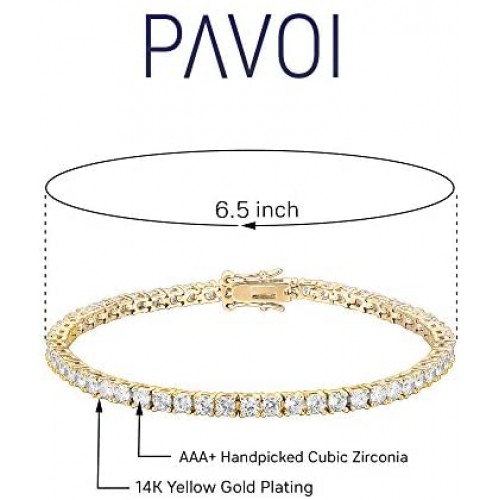 PAVOI 14K Gold Plated Cubic Zirconia Classic Tennis Bracelet | Gold Bracelets for Women | Size 6.5-7.5 Inch